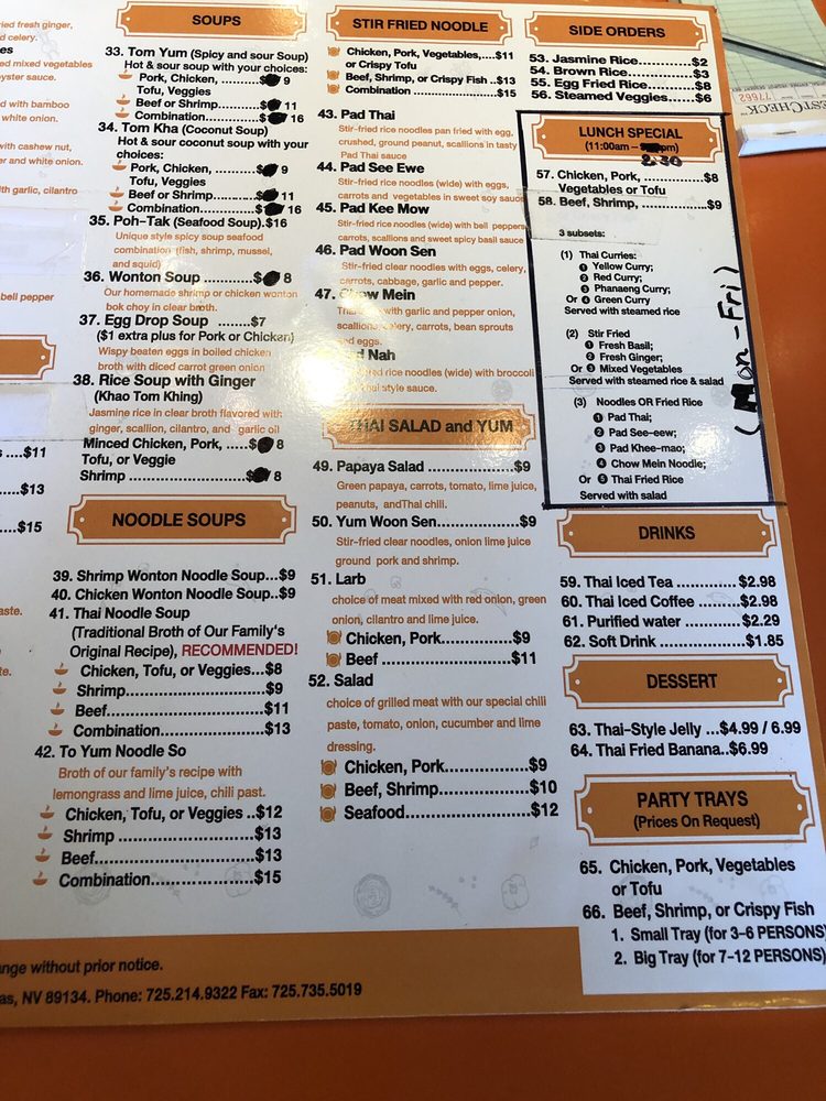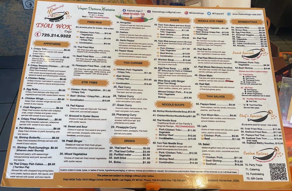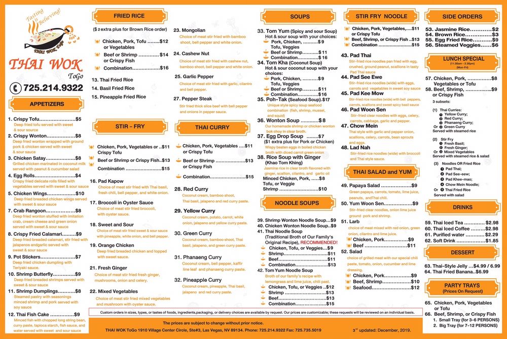 Welcome to Thai Wok ToGo, your newest destination for authentic Thai cuisine in Las Vegas! Nestled at 1910 Village Center Cir Ste #3, our casual eatery is dedicated to delightful stir-fries, aromatic curries, and flavorful noodle dishes made with fresh ingredients. We take pride in offering a menu filled with tempting choices like Pad Kapow and Pad See Ewe, each packed with bold flavors that transport your taste buds straight to Thailand.