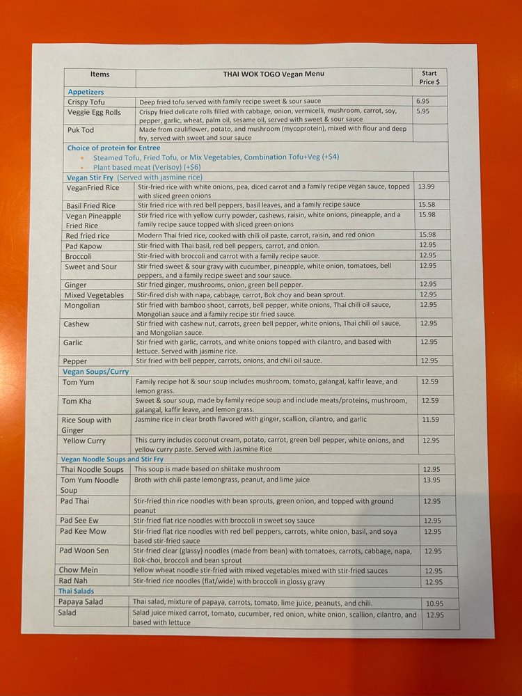 Our commitment extends beyond delicious food; we cater to diverse dietary preferences with plenty of vegan and vegetarian options. Whether you're grabbing takeout, enjoying the ambiance of our outdoor seating, or reserving for a private dining experience, we’ve got you covered. With catering services available and happy hour specials, Thai Wok ToGo is perfect for lunch or dinner with friends and family!