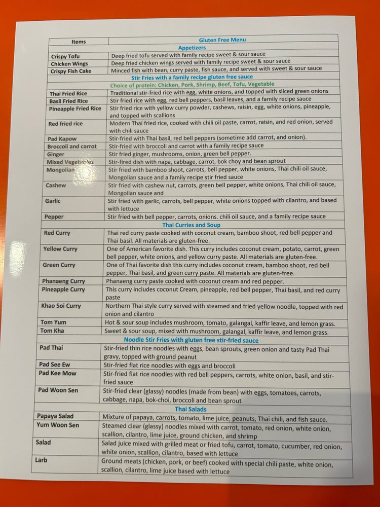 1 of Thai favorite dishes this curry includes coconut cream, bamboo shoots, red bell pepper, Thai basil, and green curry paste. All materials are glutenfree.